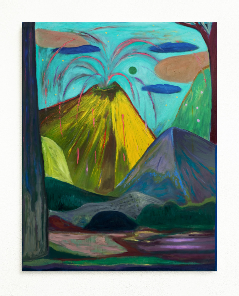 Grüner Kater vor thüringischer Landschaft | Öl, Ölkreide auf Leinwand | 60 x 50 cm