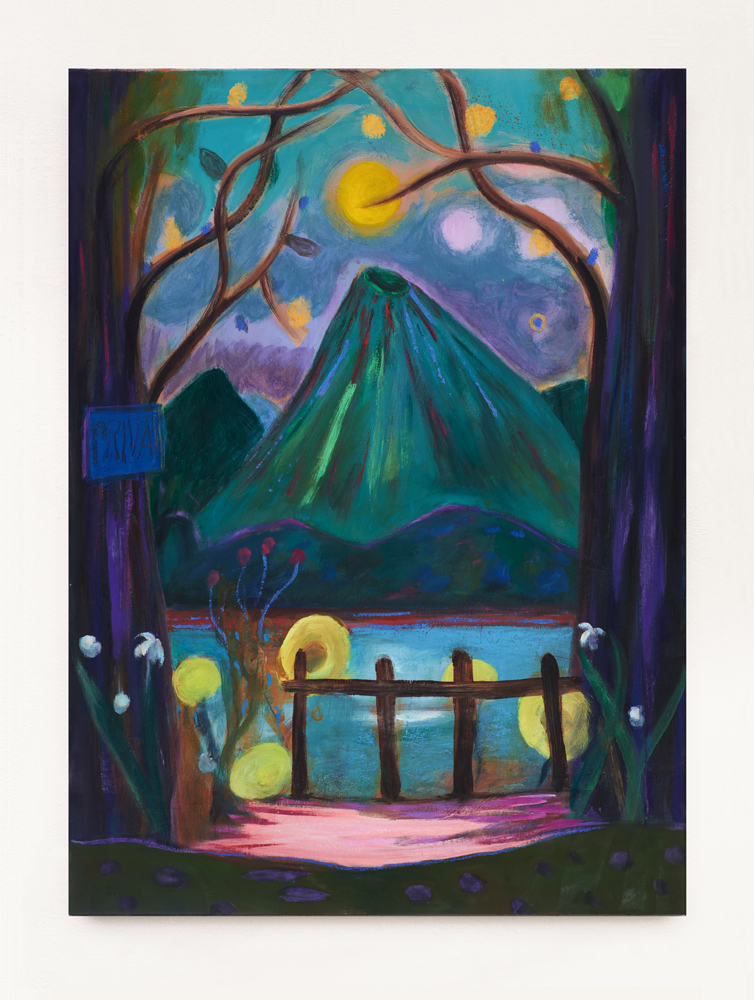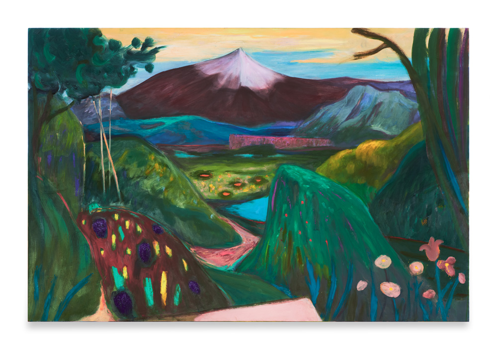 Landschaft mit Vulkan | Öl, Ölkreide, Pigmente auf Holz | 110 x 160 cm