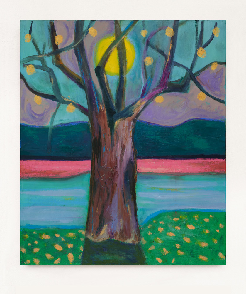 Baum im Vollmond | Öl, Ölkreide, Pigmente auf Leinwand | 70 x 60 cm